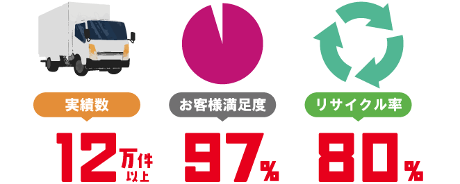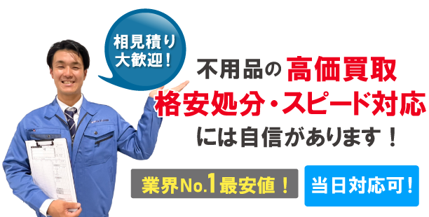 1点だけの回収からオフィス丸ごと回収まで、どんなご依頼にも対応しております。トラック1台分積み放題の定額パックは、トラックに入る分ならどれだけでも積み放題なので、量の多いお客様にオススメの格安パックです。定期的に不用品が出るお客様には、お得な定期便もご用意しておりますので、ぜひ合わせてご利用ください。また、買取可能なリサイクル品は買取も同時に行い、回収金額から買取査定分を差し引いたご請求となり、回収金額をさらに安く済ませることができます。回収業者と買取業者を両方呼ぶ手間も省けて、お得に処分することができますので、ご担当者様の負担を軽減いたします。